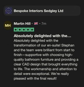 Having over 25 years of personal experience in bathroom fitting, Stephen oversees every detail to ensure your space is not only beautiful but built to last. At Bespoke Interiors, you’re not just choosing products — you’re benefiting from genuine expertise, honest guidance, and solutions tailored to your home and your needs.